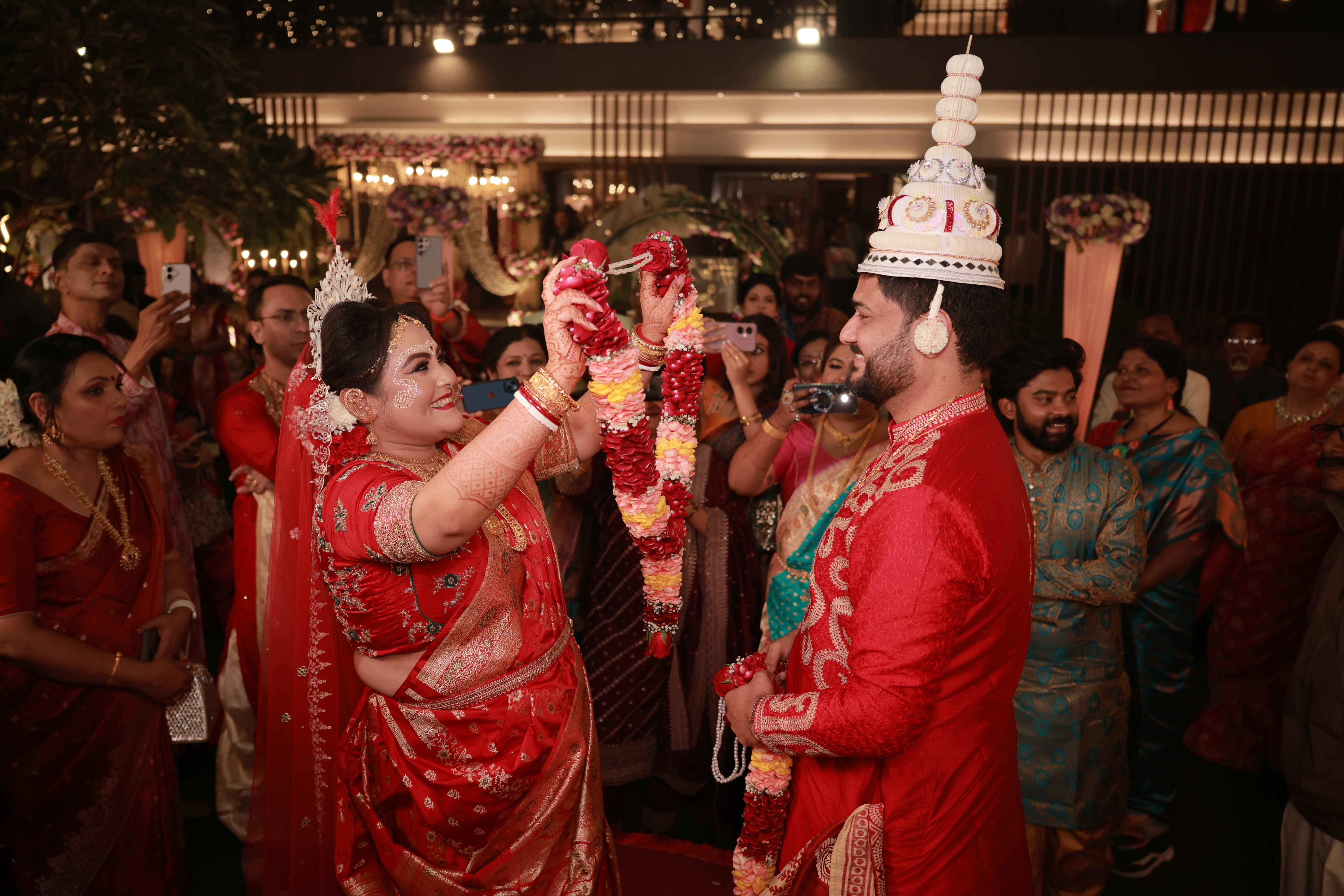 অভ্যর্থনা — flowers, lights, family, and a room full of love.